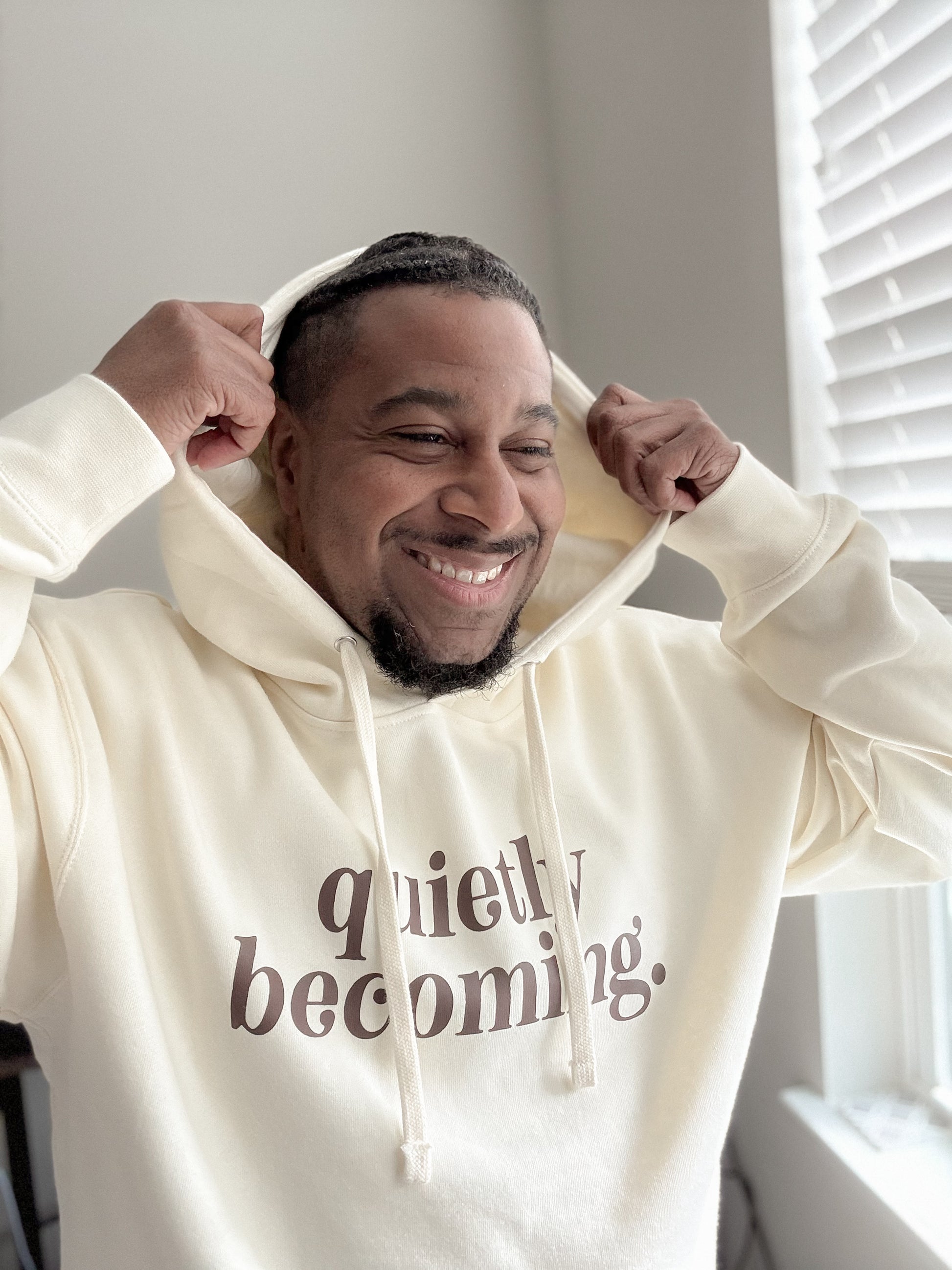 A premium, soft neutral hoodie designed for your Becoming — the quiet, tender, internal transformation no one sees but you feel deeply.